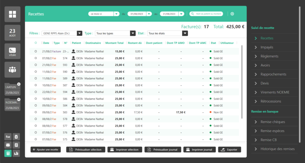 au médecin de délivrer des ordonnances, noter ses observations, rédiger des courriers, générer des feuilles de soins, consulter des résultats d’analyse et voir l’historique des règlements du patient.