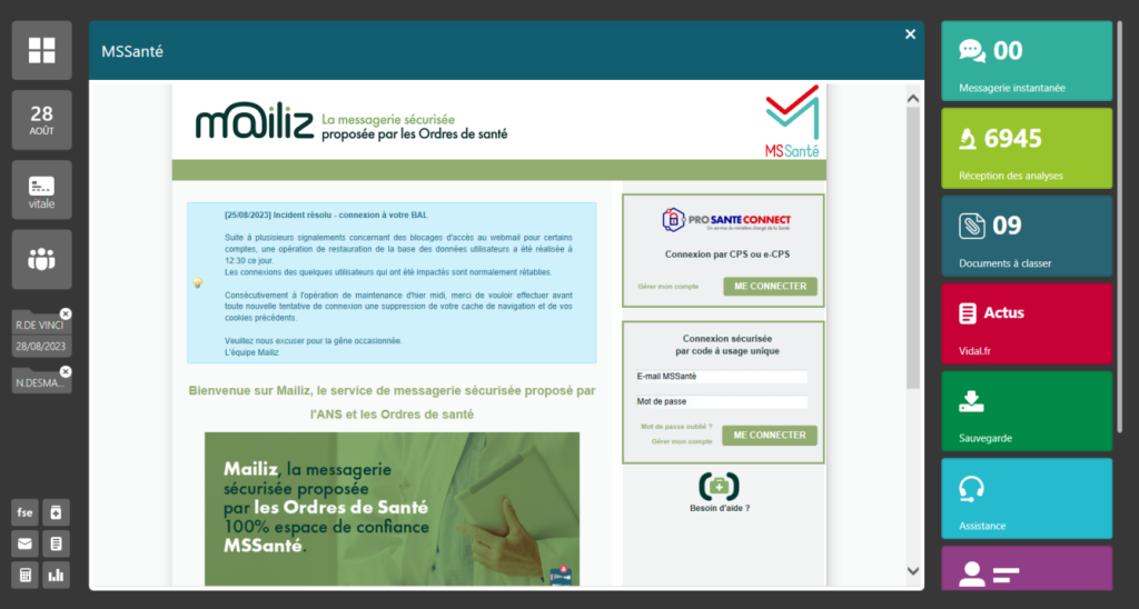 Cela signifie qu’il est capable de communiquer avec d’autres solutions essentielles du marché de la santé. C’est notamment le cas avec la solution de prise de rendez-vous en ligne Doctolib ou encore avec la base de données de produits de santé VIDAL.