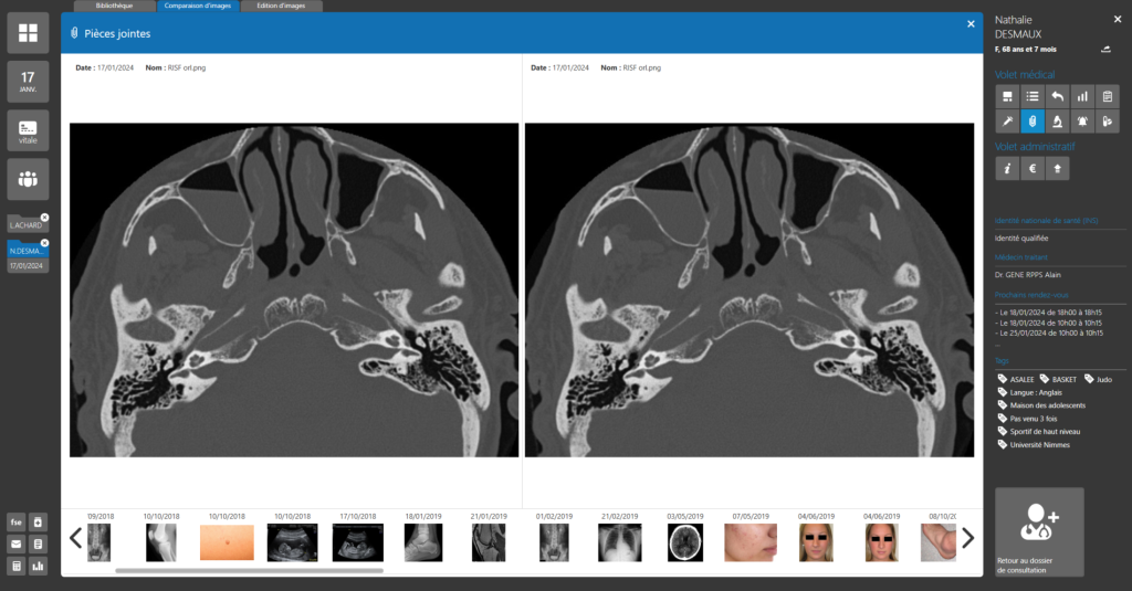 Il vous permet dans un premier temps, de rédiger et transmettre des comptes rendus facilement grâce à des outils de rédaction intelligents et puissants. Le logiciel Oto-rhino-laryngologiste ORL met aussi à disposition des spécialistes un outil agenda complet et ouvert sur les solutions de prise de rendez-vous en ligne, ce qui vous procure une vue globale de vos consultations.